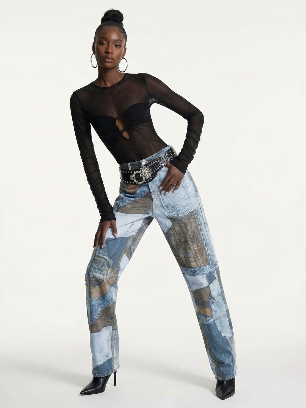 Wide Black Studded Belt with Ornate Buckle is a striking accessory designed to refresh any outfit with a touch of rock ‘n’ roll edge. Crafted from high-quality faux leather, this wide belt features rows of metallic studs along its length and an eye-catching silver-tone buckle with a floral and crescent motif. The adjustable fit allows you to wear it at the waist or hips, and its bold design easily elevates jeans, dresses, or layered styles. Perfect for anyone looking to add statement detail and attitude to their wardrobe.
