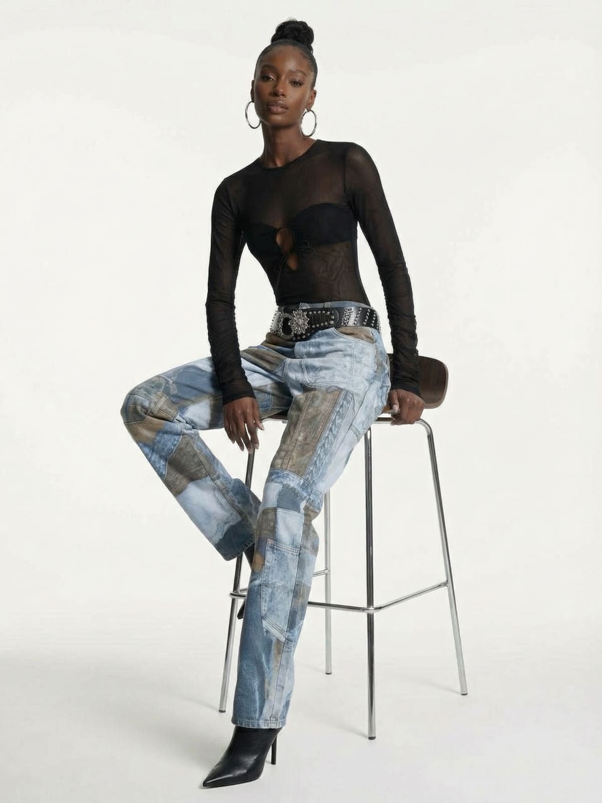 Wide Black Studded Belt with Ornate Buckle