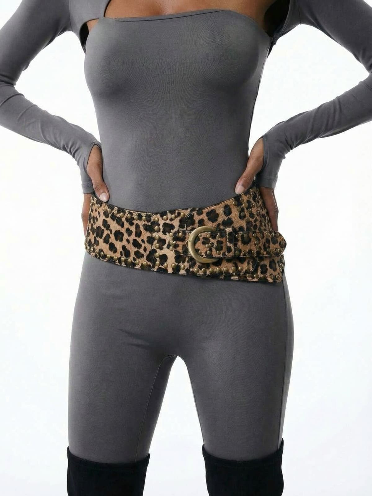 Wide Leopard Print Belt with Buckle